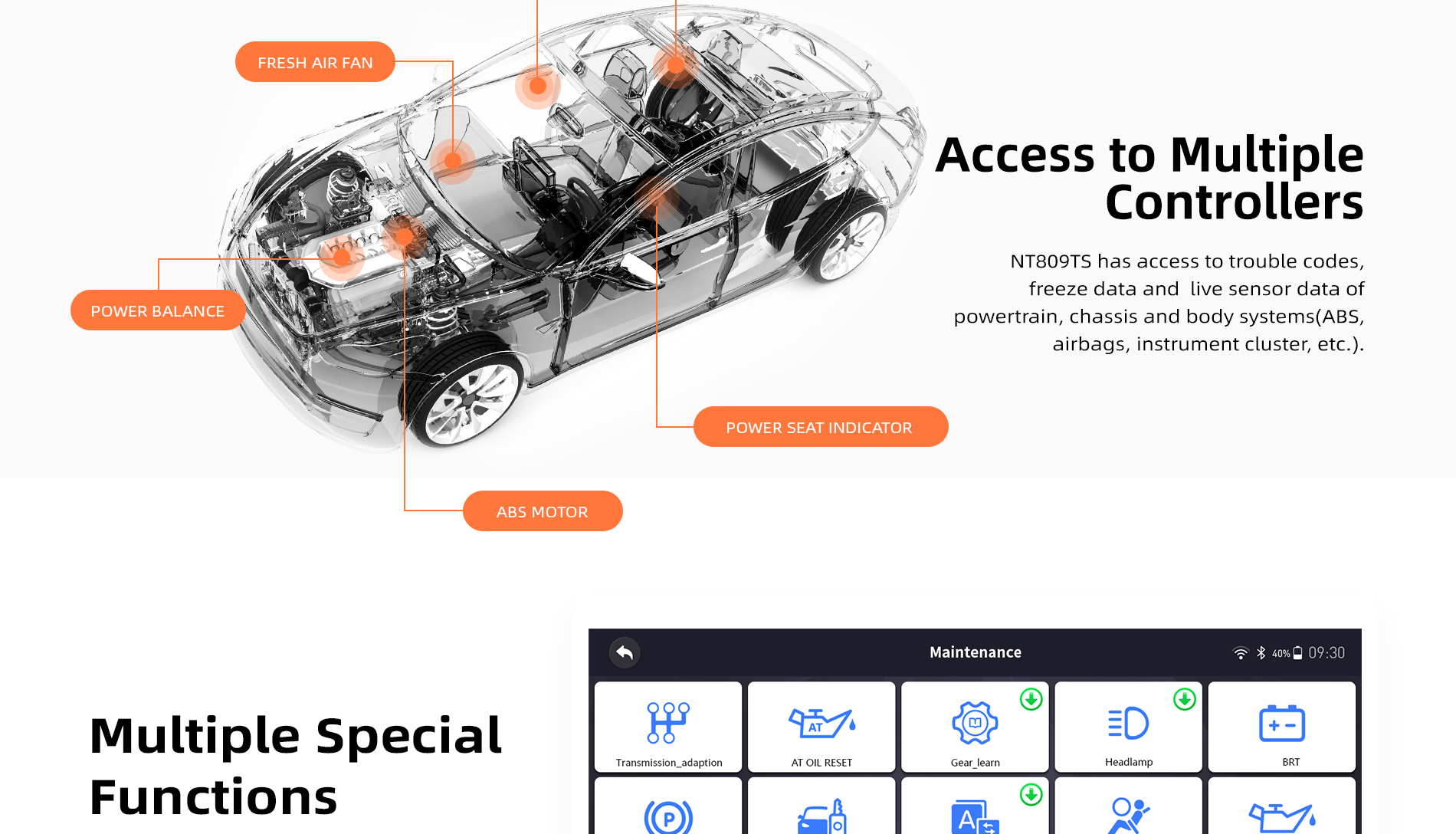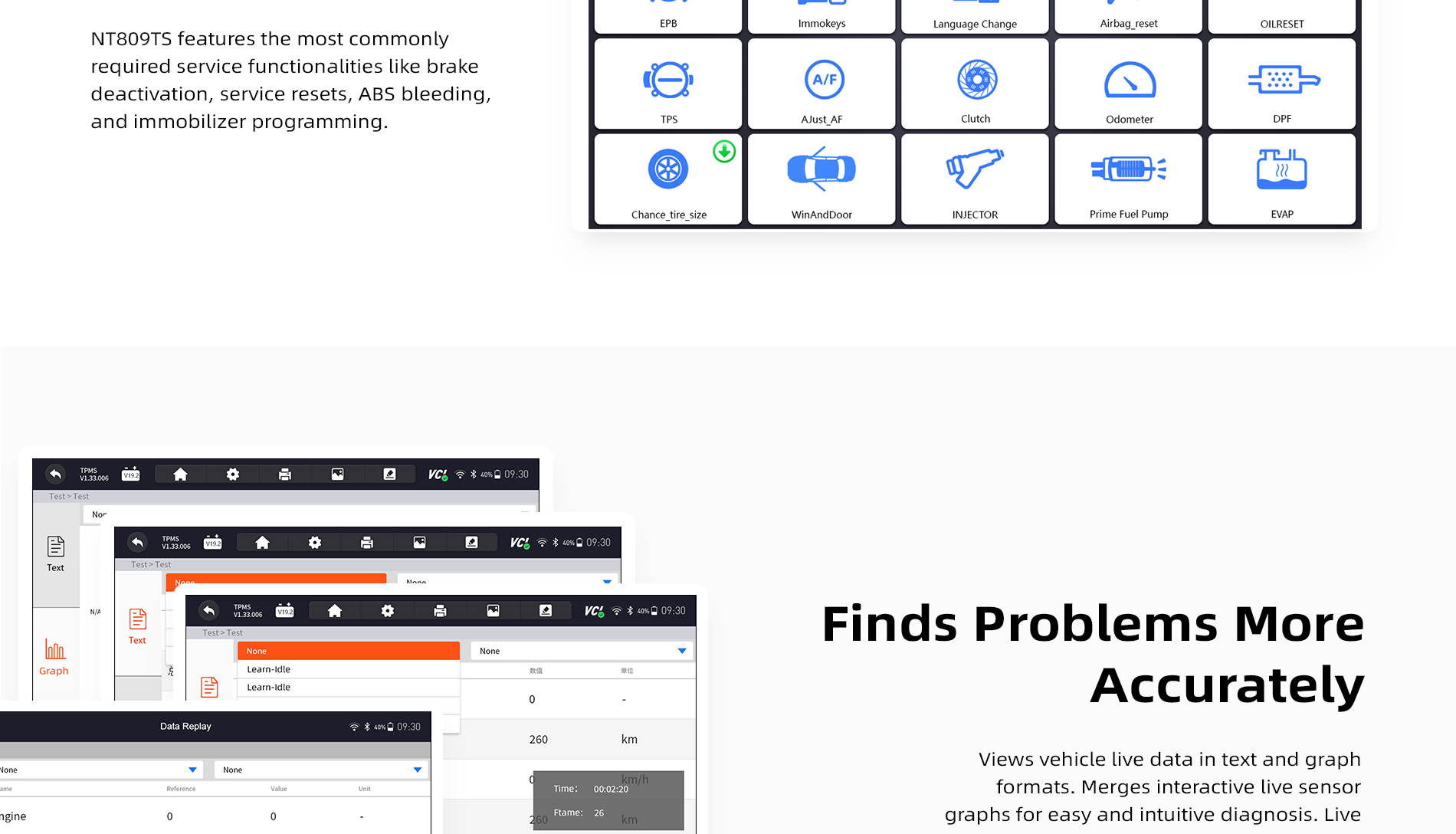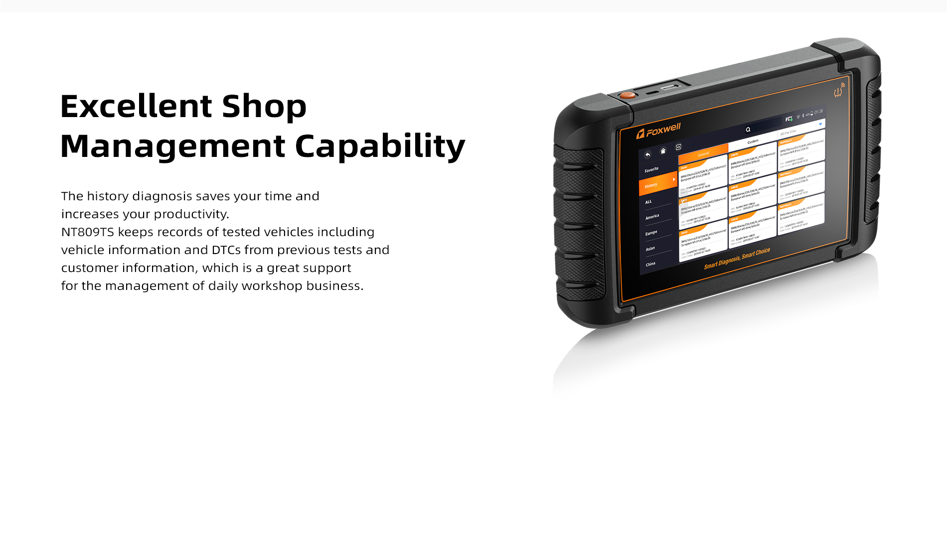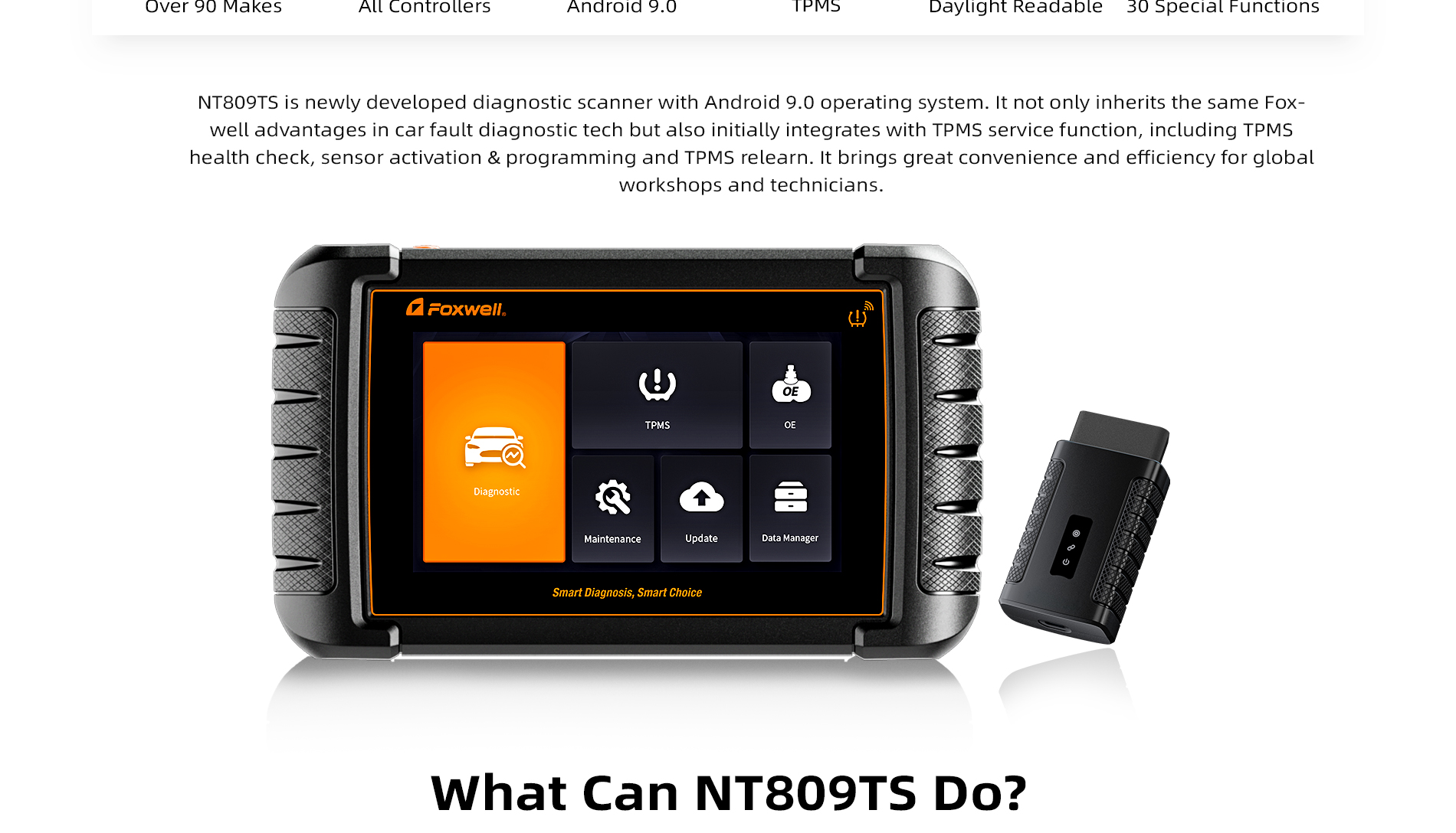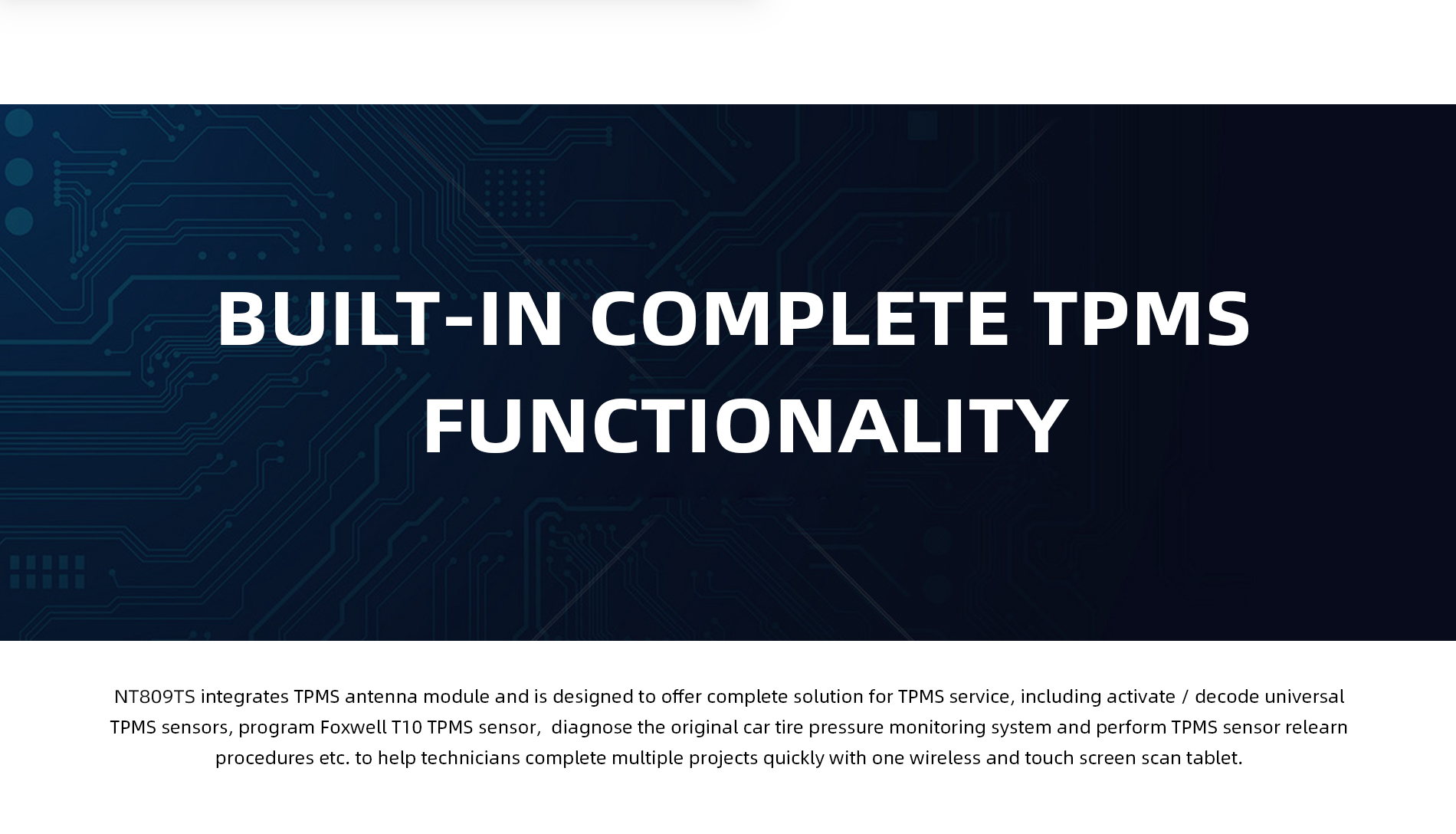 NT809TS is newly developed diagnostic scanner with Android 9.0 operating system. It not only inherits the same Foxwell advantages in car fault diagnostic tech but also initially integrates with TPMS service function, including TPMS health check, sensor activation & programming and TPMS relearn. It brings great convenience and efficiency for global workshops and technicians.