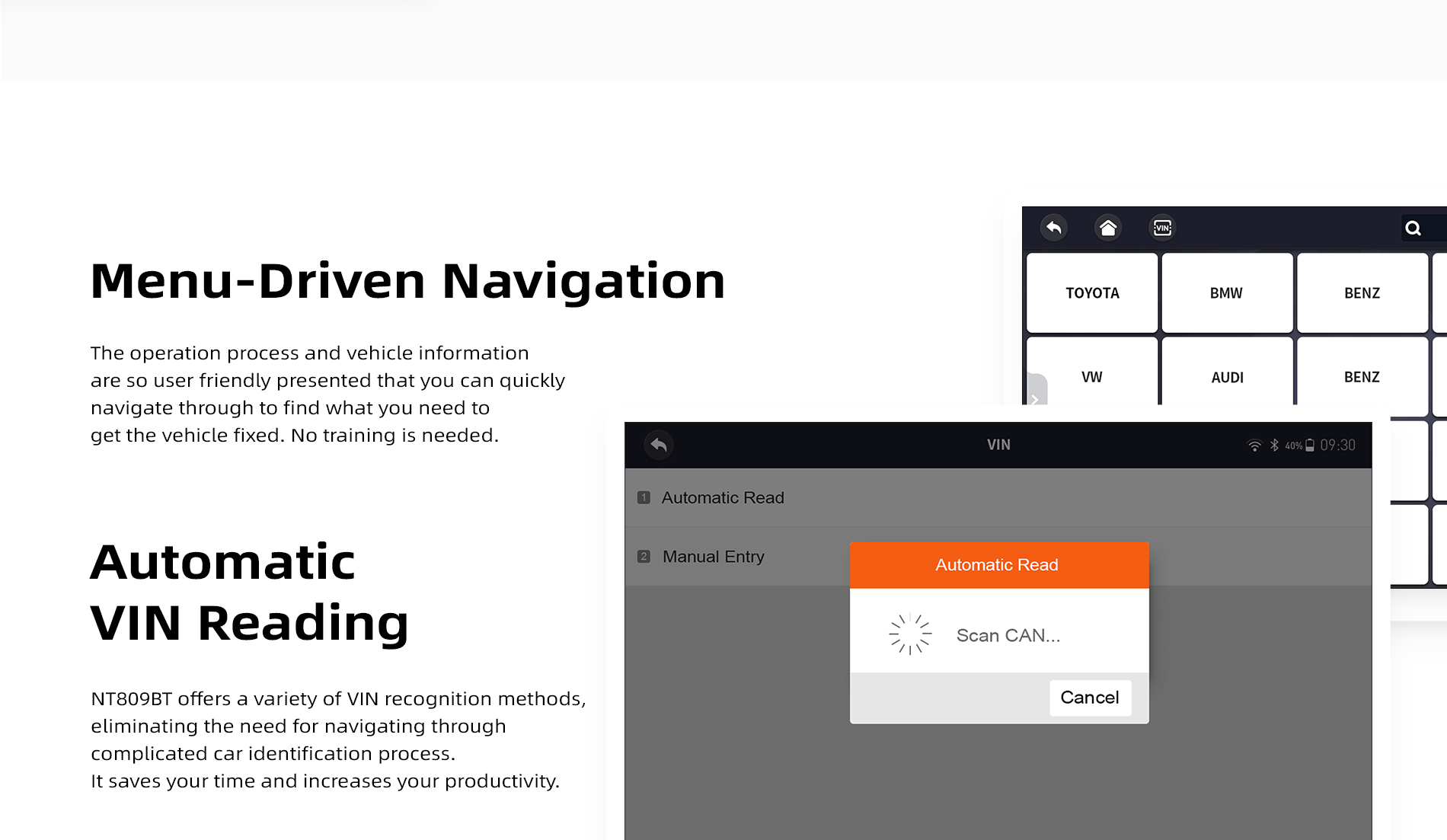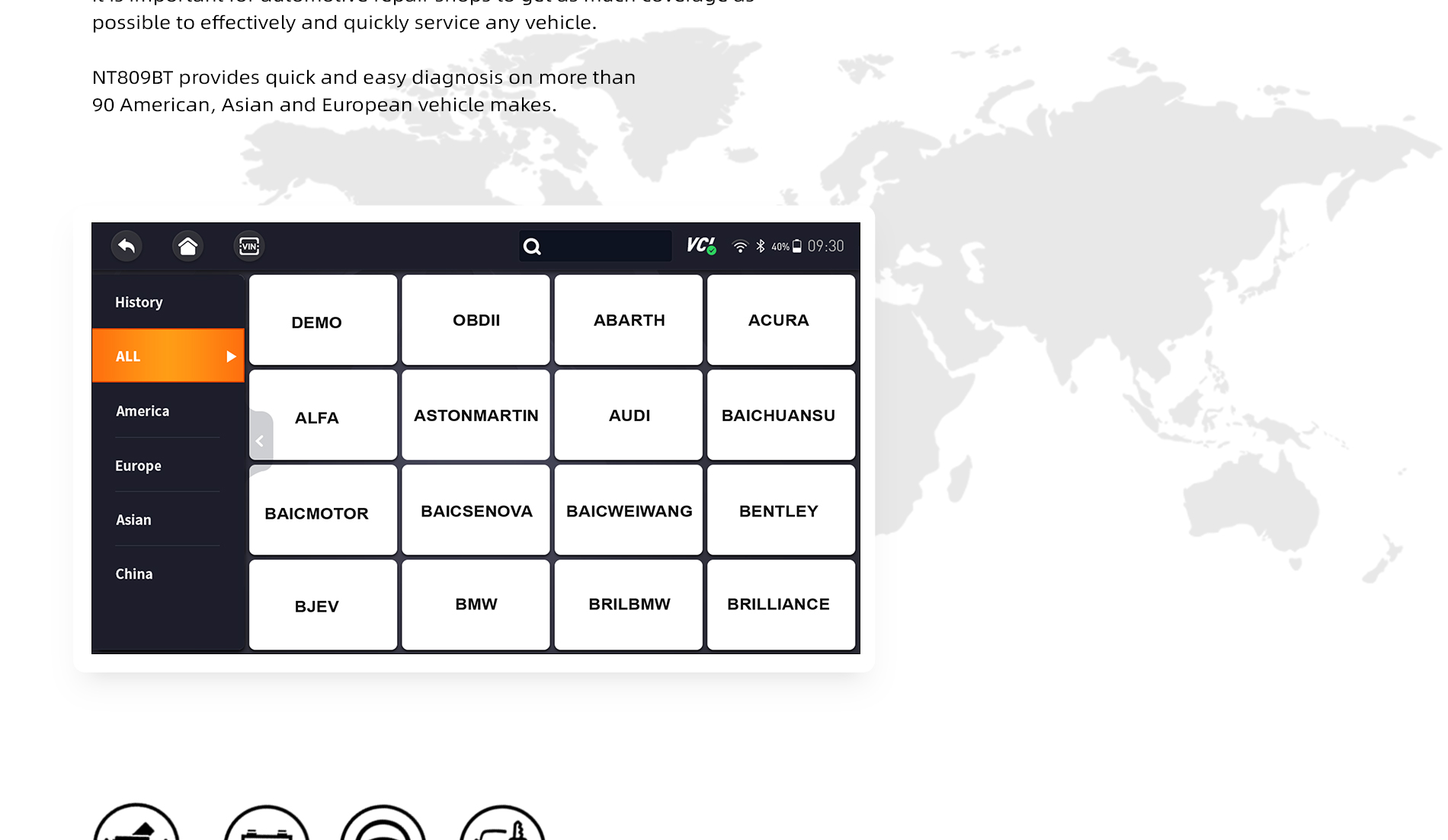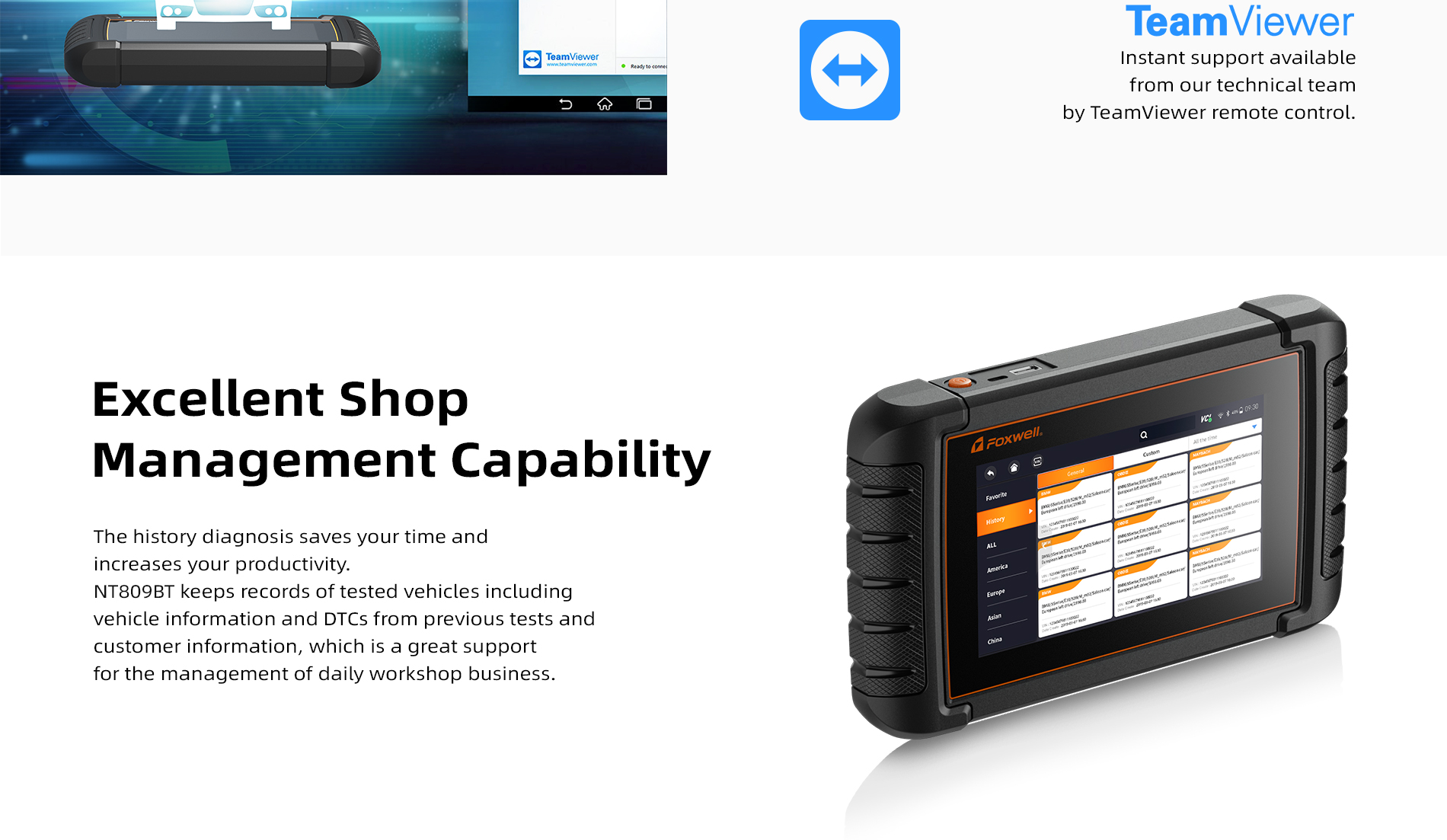 NT809BT is newly developed diagnostic scanner with Wireless VCI Foxlink I. It inherits the same Foxwell advantages in car fault diagnostic tech, such as multi manufacturer coverage, service functions and accurate test data, making it the perfect tool for busy garages or workshops, who need the latest technology at unbeatable value.